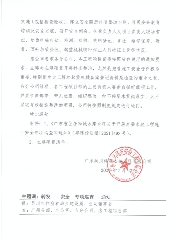 (六)此次專項(xiàng)安全巡查工作時(shí)間長(zhǎng)、涉及面廣,請(qǐng)各地住建部門安排1名人員作為巡查工作聯(lián)絡(luò)員,于6月30日前填寫在建項(xiàng)目清單(附件1)、聯(lián)絡(luò)員名單回執(zhí)(附件2)報(bào)送我廳工程質(zhì)量安全監(jiān)管處。