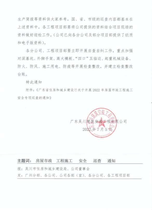 為認真落實《住房和城鄉(xiāng)建設(shè)部關(guān)于開展房屋市政工程安全生產(chǎn)治理行動的通知》(建質(zhì)電〔2022〕19號)、《廣東省安全生產(chǎn)委員會關(guān)于印發(fā)<廣東省安全生產(chǎn)大檢查工作實施方案>的通知》(粵安〔2022〕6號)工作部署,進一步壓實建設(shè)各方安全生產(chǎn)主體責(zé)任,治理施工安全突出問題,切實提升全省施工安全管理水平,按照我廳今年重點工作任務(wù)安排,結(jié)合我省城市建設(shè)安全專項整治三年行動有關(guān)工作實際,我廳通過政府購買服務(wù)的方式,委托第三方專業(yè)機構(gòu),開展全省房屋市政工程施工安全專項巡查。現(xiàn)將有關(guān)事項通知如下: