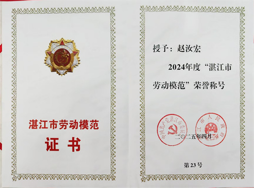 4月27日,湛江市委、市政府召開2025年湛江市慶祝“五一”國際勞動節(jié)大會,為進(jìn)一步弘揚(yáng)勞模精神、勞動精神、工匠精神,為湛江跨越式、高質(zhì)量發(fā)展廣泛匯聚智慧和力量,根據(jù)《中共湛江市委湛江市人民政府關(guān)于表彰湛江市勞動模范、先進(jìn)工作者和先進(jìn)集體的決定》,會上表彰湛江市勞動模范、先進(jìn)工作者和先進(jìn)集體。其中,我司趙汝宏同志榮獲湛江市勞動模范稱號。